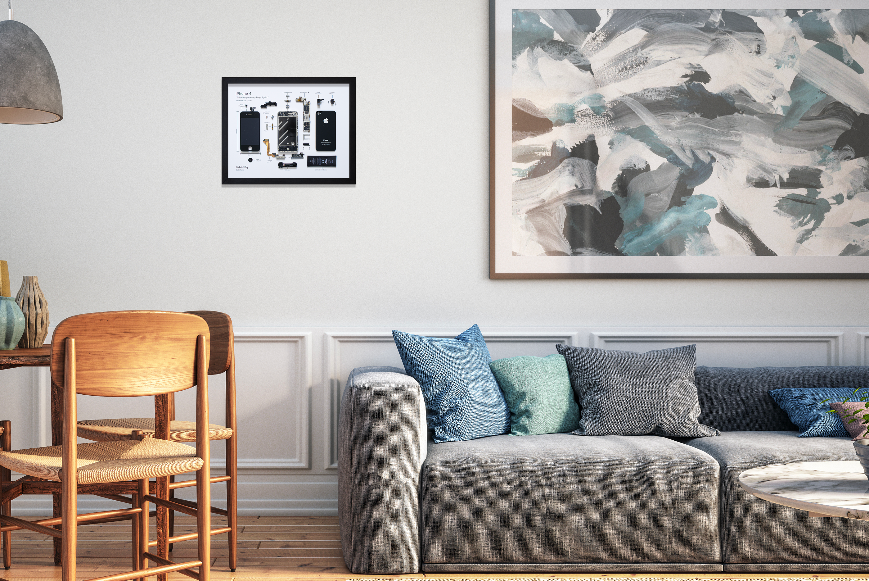 Each frame is handmade using parts from an iPhone 4. We give new life to non-working devices by carefully disassembling them and arranging their components inside a custom frame. It’s the perfect gift for any tech enthusiast, offering a unique glimpse inside the device and showcasing how rapidly technology continues to evolve.